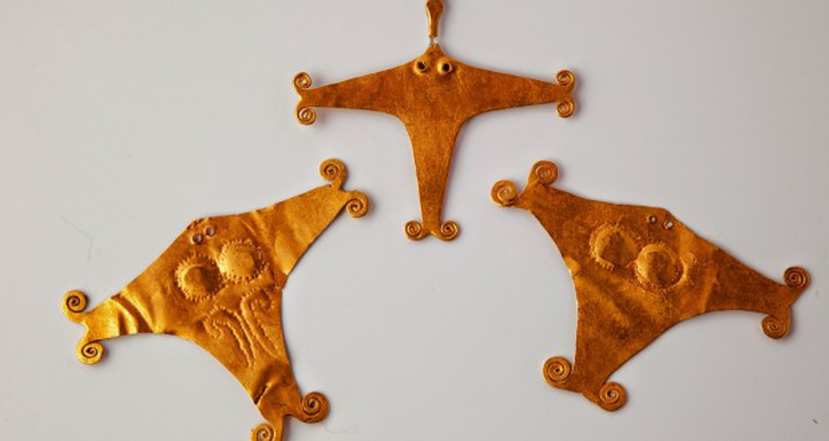 Gold idols found at Moigrad, Romania, 4000 BC. National Museum of Romania, Moigrad. Photograph courtesy of Alina Grigoras Butu, Editor in Chief, The Romanian Journal