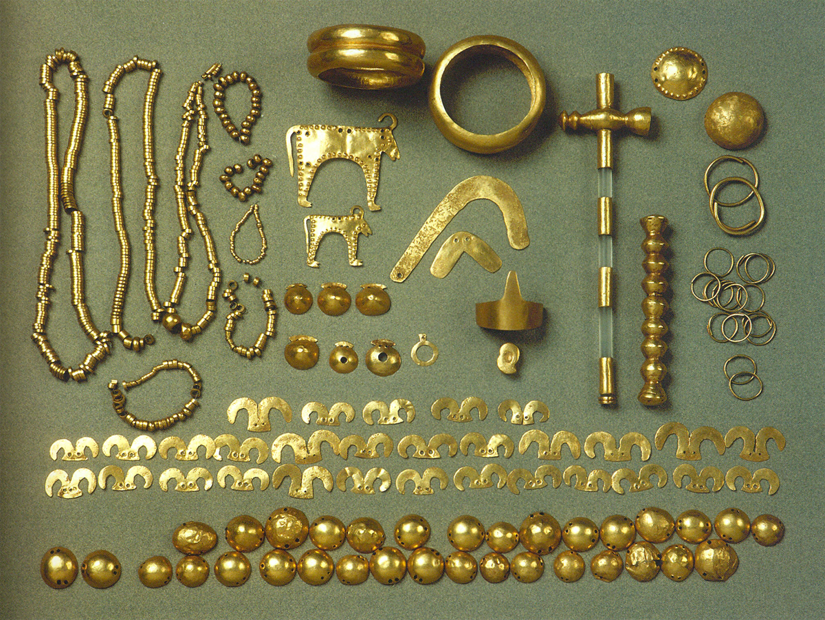 Gold found at a tomb in present-day Varna, Bulgaria, on the Black Sea coast, 4600 BC. Public domain image. See Bulgaria's Thracian Heritage.